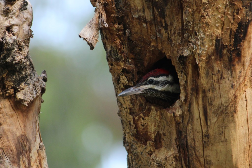 Well, if all that were not enough, woodpeckers have modified feathers called bristles that extend over the top of their nostrils so that they don’t inhale any wood chips while they are pecking away.