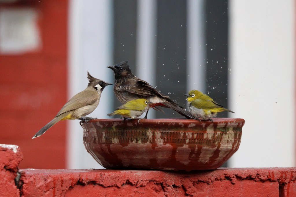 Much like human beings, Oriental White-eyes are social birds. You’ll see them congregating in flocks as small as 10 or much larger, everywhere — even in your backyard. You’ll even see them in mixed flocks, with birds from other species.