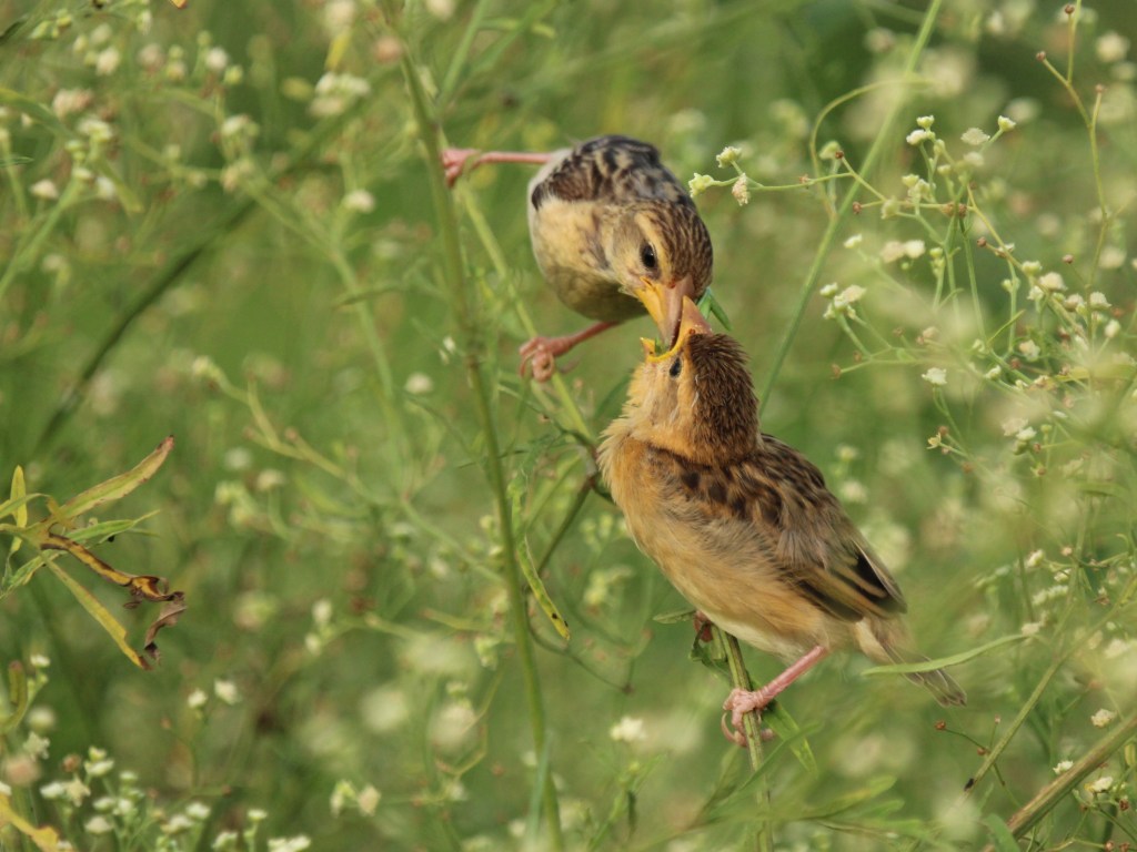 Baya Weaver is a small sparrow-sized bird known for its amazing nesting skills. It is monsoon again, and bayas (or the weaver birds) are back using their artistic skills in building nests and bringing up families. We can easily notice helmet shaped nests hanging from the Palm Trees, which is one of the favored trees for nest making.
