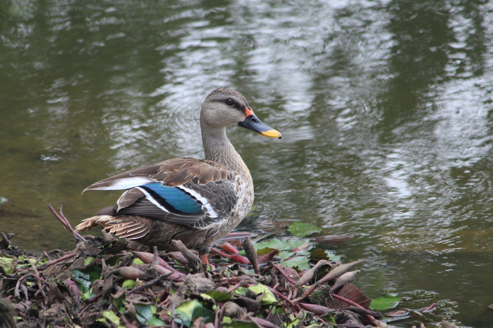The Indian spot-billed duck is a large duck, which feed mainly at the surface water rather than by diving. The duck is a non-migratory breeding duck throughout freshwater wetlands in the Indian subcontinent. The name is derived from the red spot at the base of the bill that is found in the mainland Indian population.