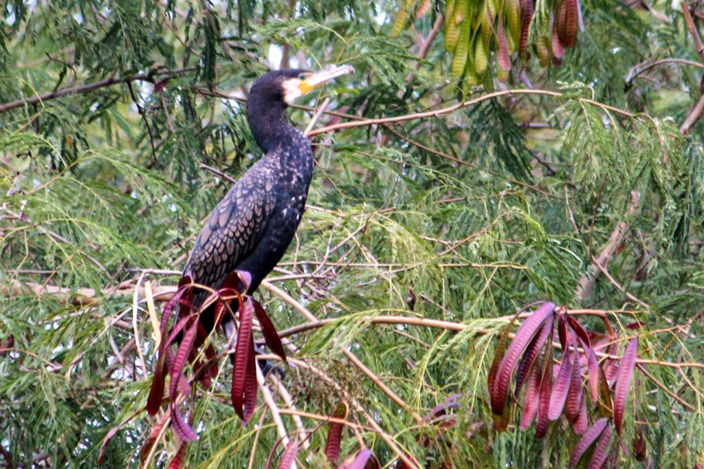 The Great cormorant is a large, long-necked, beautiful black waterbird with an oily Plumage which is usually black with an iridescent sheen.