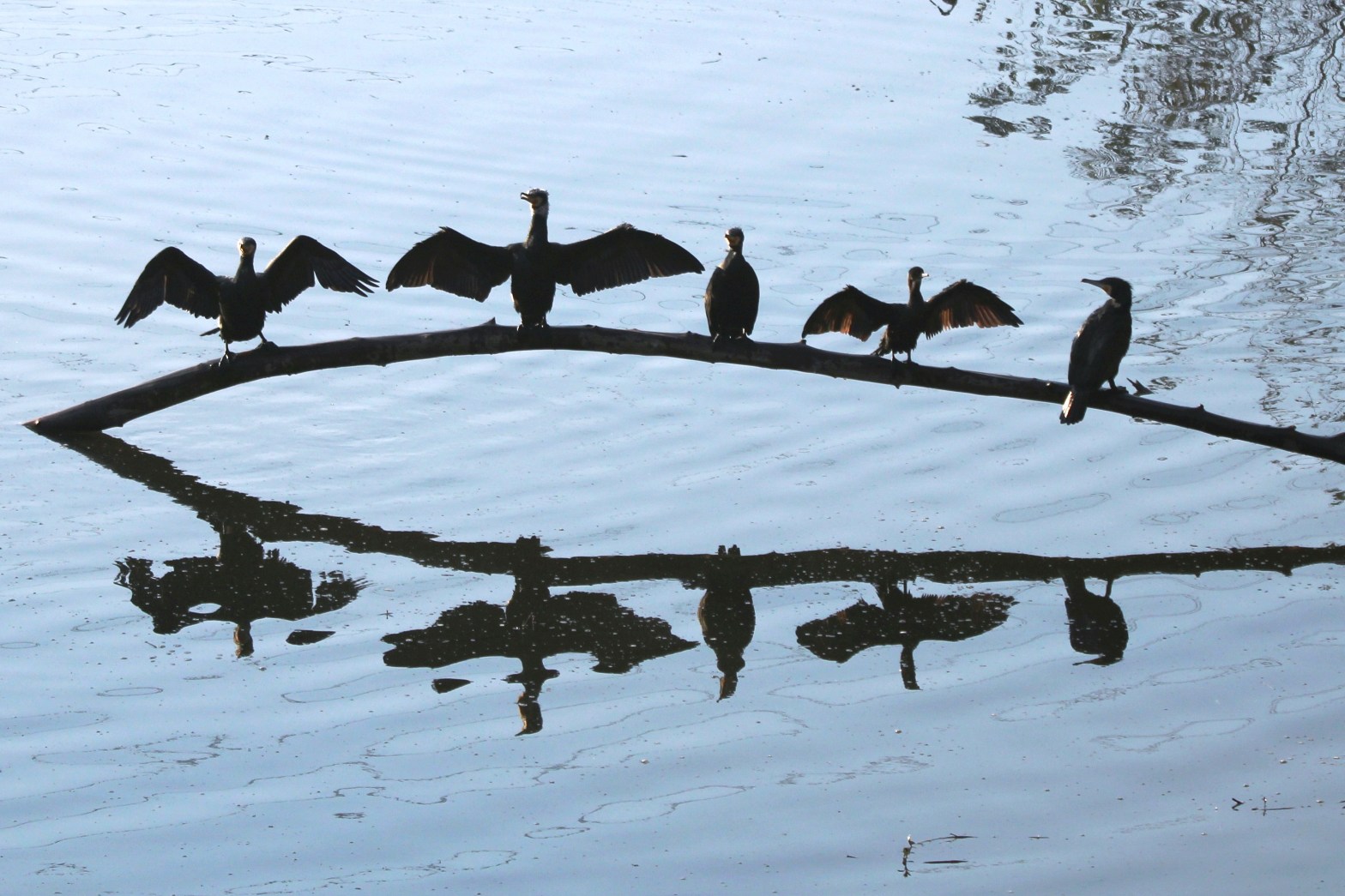 It is often seen with its wings spread for drying after it had been diving for fish. After fishing, cormorants go ashore and are frequently seen holding their wings out in the sun.