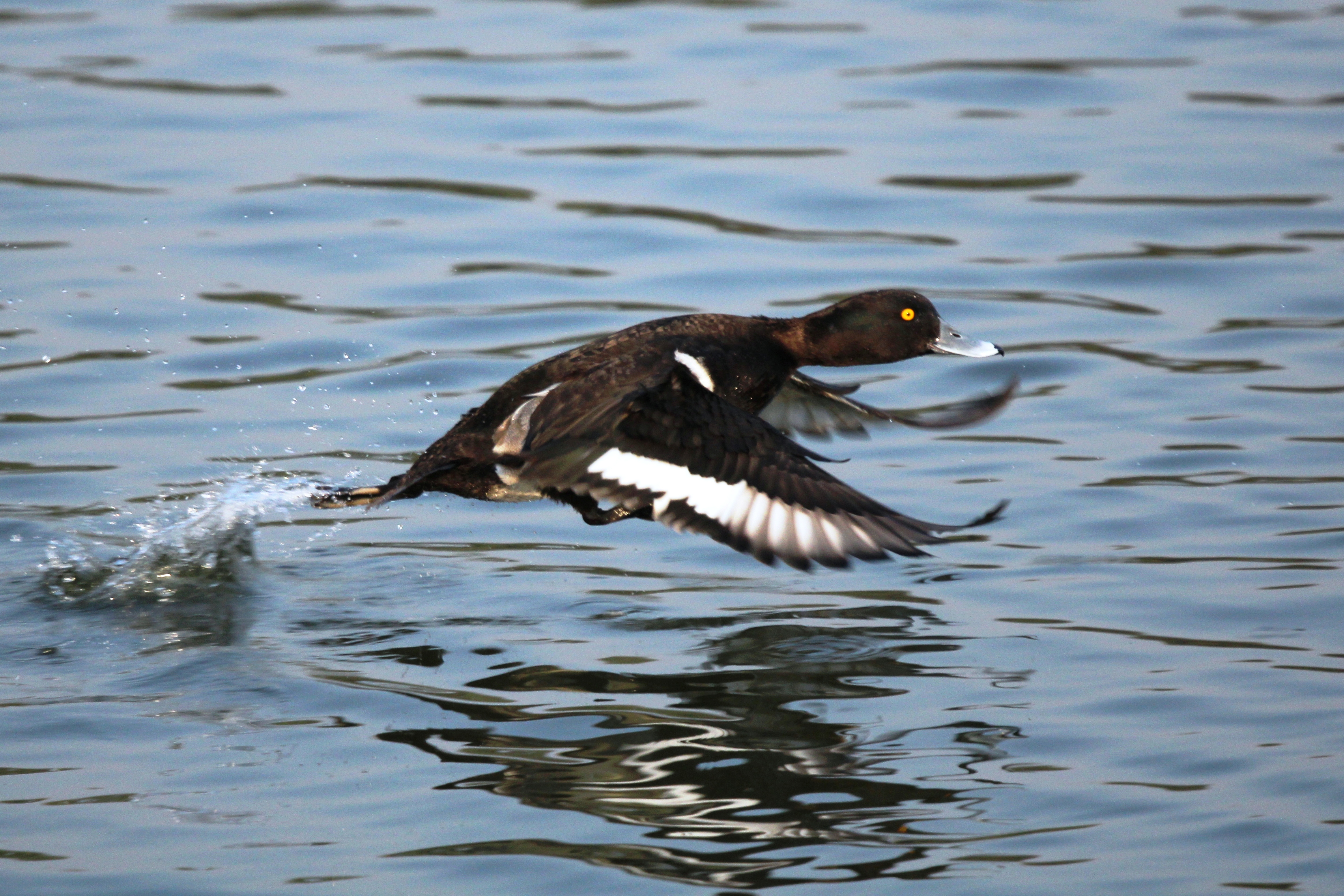 Tufted ducks are superb divers, going as deep as 50 feet below the water’s surface as they forage. When startled, they will take off from the water quickly, running briefly along the surface to get enough speed for an explosive liftoff.