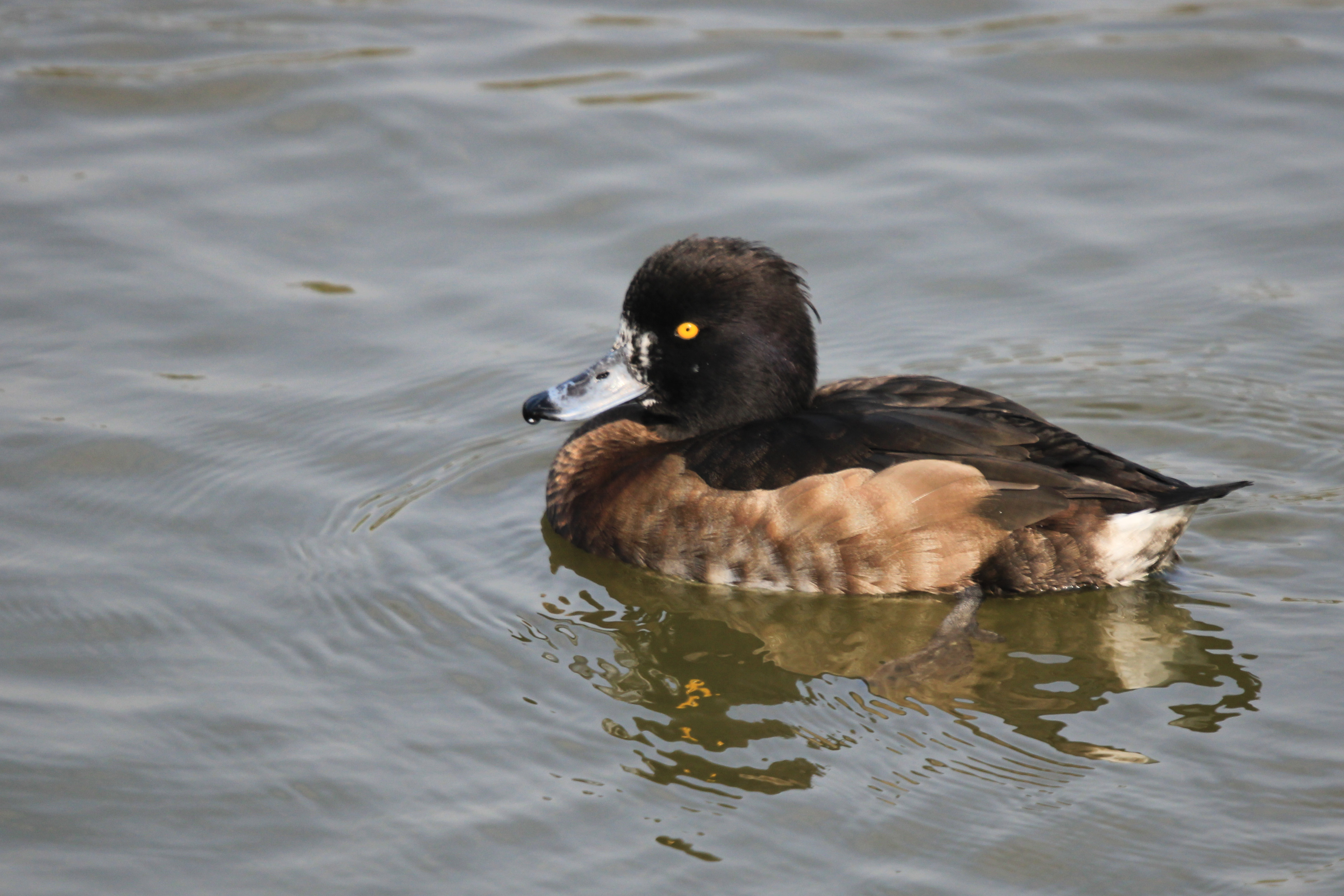 The tufted duck is medium-sized diving ducks ,with short bodies and large heads. They are called tufted ducks because they have a unique tuft on their heads ( clearly visible in the featured image )