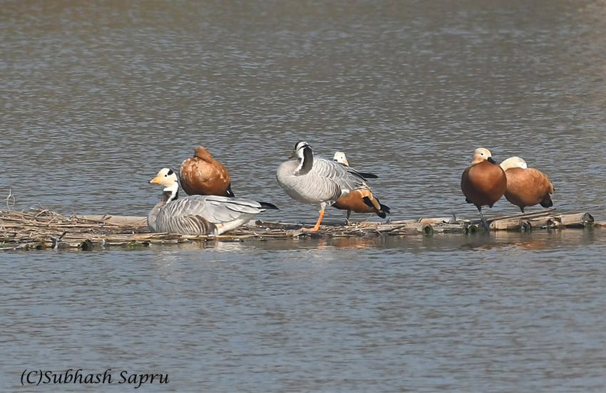 .Duck with orange-brown body plumage and a paler head, They scale the mighty Himalayas when they migrate to India from the north attaining heights of 6800 meters.