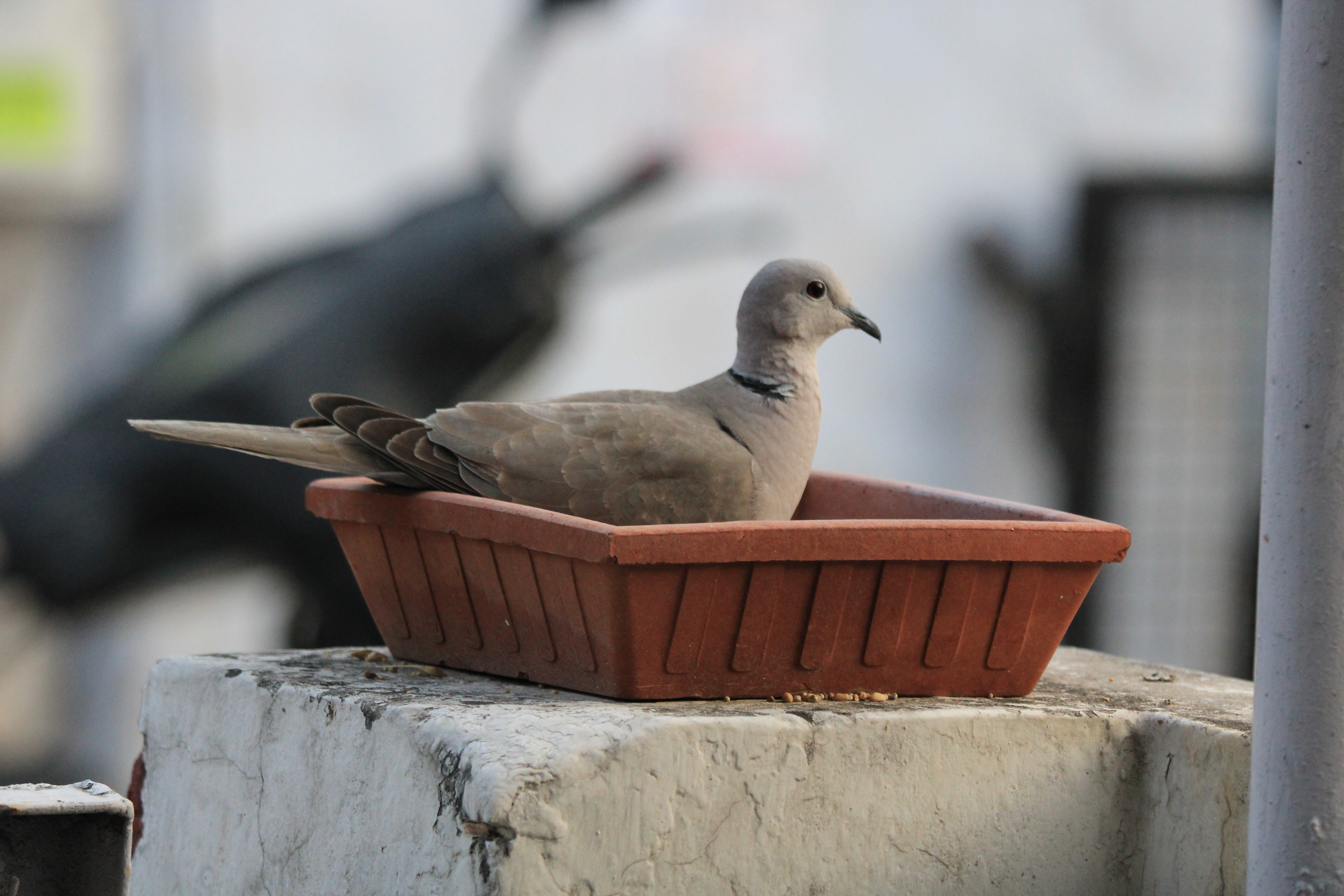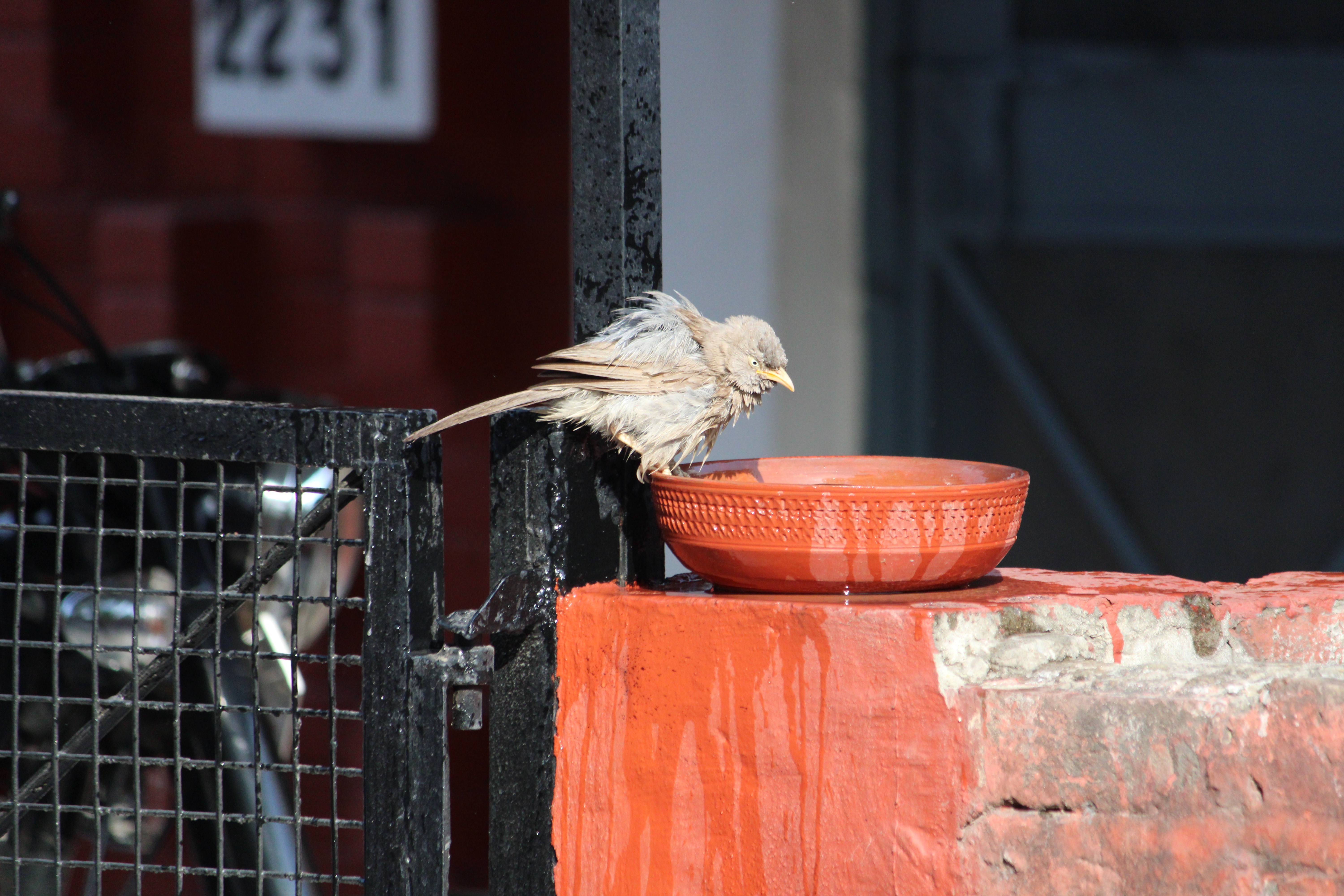 I too have placed earthen terracotta pots in side garden and front and rear courtyard of my residence for water and feed for birds. Birds are now our daily visitors. These include Rose ringed Parakeet, Black Kite, Eurasian Collared Dove, Common Tailor Bird, Black drongo, Rufous Treepie, House Crow, Common Myna, Rock Pigeon, Brown Headed Barbet come daily to take rest , feed and bath . Watching them soothe my soul. As and when I get a chance, I keep on observing the behavior of these birds and if possible, click the moment, so as to encourage others to place the pots for clear drinking water in their balconies or yards.