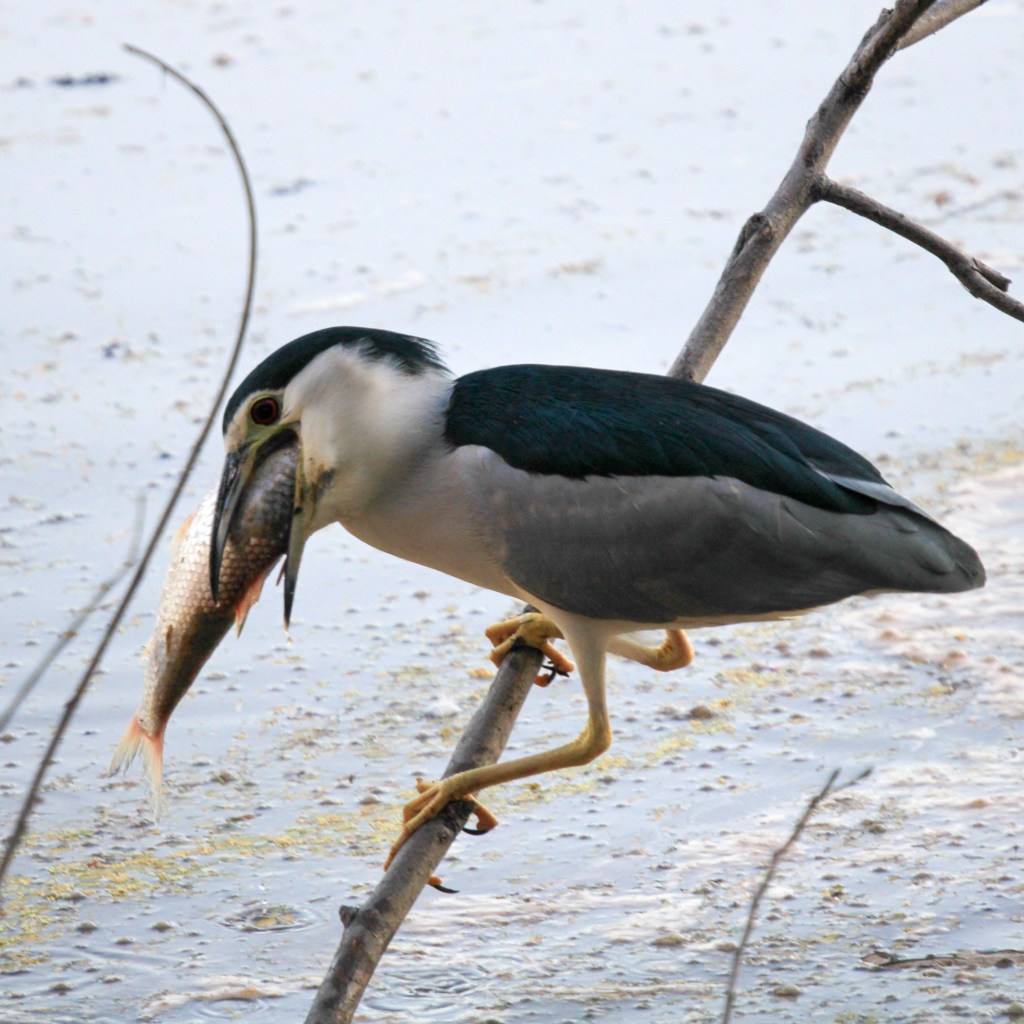 While White-throated Kingfisher, Common Kingfisher, White-breasted Waterhen, Knob billed duck, Painted Stork, Cattle Egret, Great Egret, Black-crowned Night-Heron, Little Cormorants can be seen near the regulator end along the water body.